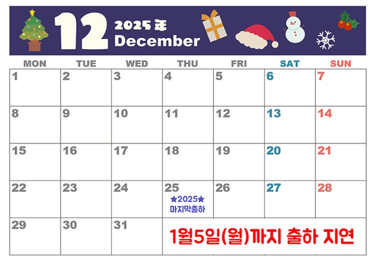 ▶ 12월25일(목) 올해 크리스마스가 마지막 출하입니다.