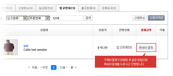 구매대행은 구매비 결제, 배송비결제 총 2번에 걸쳐 결제가 이루어집니다.